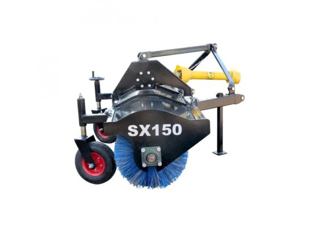 Щетка подметальная для минитрактора SX-150 устанавливается на трехточечную навеску трактора (минитрактора) и приводиться в движение о вала отбора мощности (ВОМ). Ширина захвата - 1,5 м. Используется для уборки территорий и дорог.